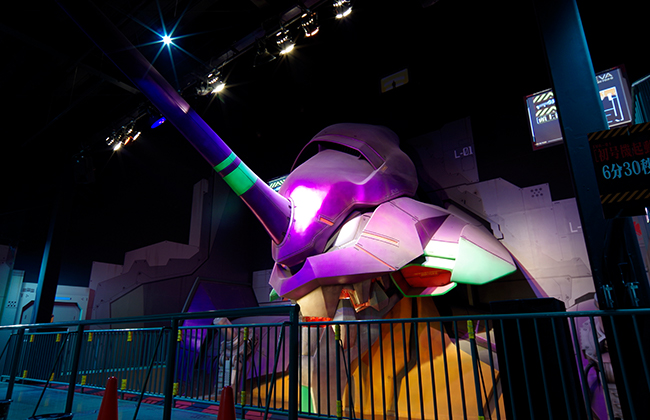 パビリオン内にはエヴァンゲリオンの世界に浸れる仕かけが満載。エヴァンゲリオン初号機を1/1スケールで展示するブースでは、光や音による演出も!