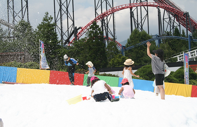 「雪遊び広場」は富士山の地下水を使った人工雪で作られた広場です。専任スタッフが常駐しているので、小さなお子さんでも安心してご利用いただけます。