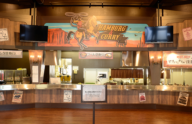 アトラクションで遊びまわった後は、お腹もペコペコに。ガッツリとお肉を食べたいなら、ぜひ「グリルキッチン MEAT×MEET」へ。ウエスタンスタイルの店内には鉄板で焼いたお肉の香りが立ち込め、足を踏み入れた瞬間からあなたの嗅覚を刺激! ハンバーグやステーキなど、お腹を満たすメニューを豊富に揃えています。