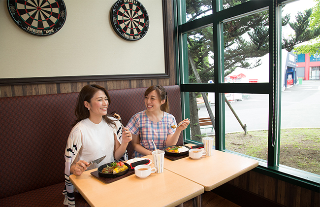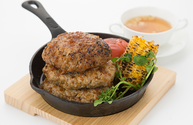 ボリューミーなハンバーグが三段重ねになった「チャレンジじゅうじゅうハンバーグ」は、見ただけでお腹が膨れそうなド迫力のメニュー。富士急ハイランドが誇る絶叫マシンを制覇した猛者に、自分へのご褒美として注文していただきたい超絶メニューです。